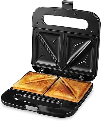 OVENTE Electric Sandwich Maker with Non-Stick Plates, Indicator Lights, Cool Touch Handle, Easy to Clean and Store, Perfect for Cooking Breakfast, Grilled Cheese, Tuna Melts and Snacks, Black GPS401B